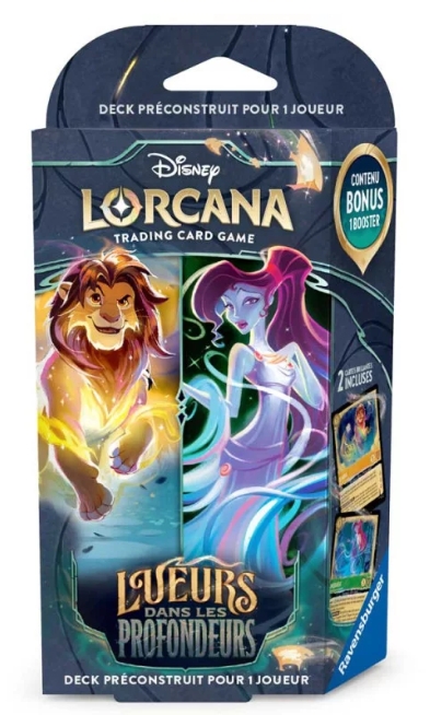Pour jouer à Disney Lorcana, chaque joueur a besoin d’un deck de soixante cartes. Les decks de démarrage prêts à jouer contiennent un deck préconstruit avec une liste de cartes spécifique. Si vous êtes novice en matière de jeux de cartes à collectionner, ou si vous souhaitez expérimenter le jeu avec un deck conçu et testé par l’équipe Lorcana, c’est un bon point de départ.
